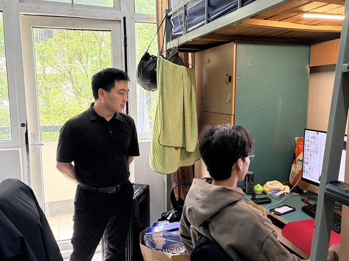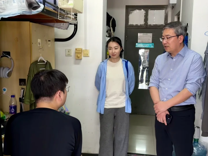 研究生寝室里,老师们亲切地与同学们交流了研究生日常学习生活,特别是对研究生的论文选题、实习、就业规划等做出具体指导。