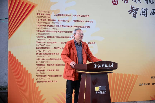 为迎接我校“4·23世界读书日”,助力教育、科技、人才一体化发展战略实施,积极探索人工智能赋能知识传播与创新学习新路径,浙科大大学生文化素质教育协办的“书香领航智阅同行”2026年读书月启动仪式在4月23日中午在图书馆圆满举行。