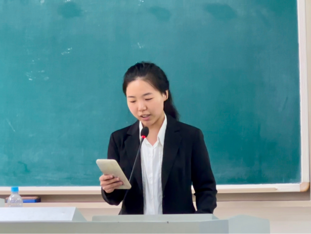 最后一个环节是人文学院团委书记姚碧君致词。回溯过往,我院团委在上级团委的领导和成员的积极进取下,各方面工作扎实、有序推进。希望新一届各学生会成员能够不忘初心、锻造恒心、筑牢决心,明确目标,保持热情,在学生会的舞台上绽放光彩,最后收获属于自己的美好。
