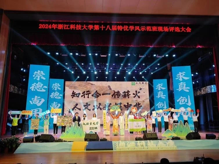 汉语言文学221由38名同学汇于浙科、聚于人文而成,院校组织任职占比80%,社团任职人员占比60%。班级同学荣获省政府奖学金、创新创业奖学金等,各类奖学金覆盖率100%。以“一个中心,五个基本点”模式建构“四0班级”,达成0投诉、0违纪、0诈骗、0安全事故。
