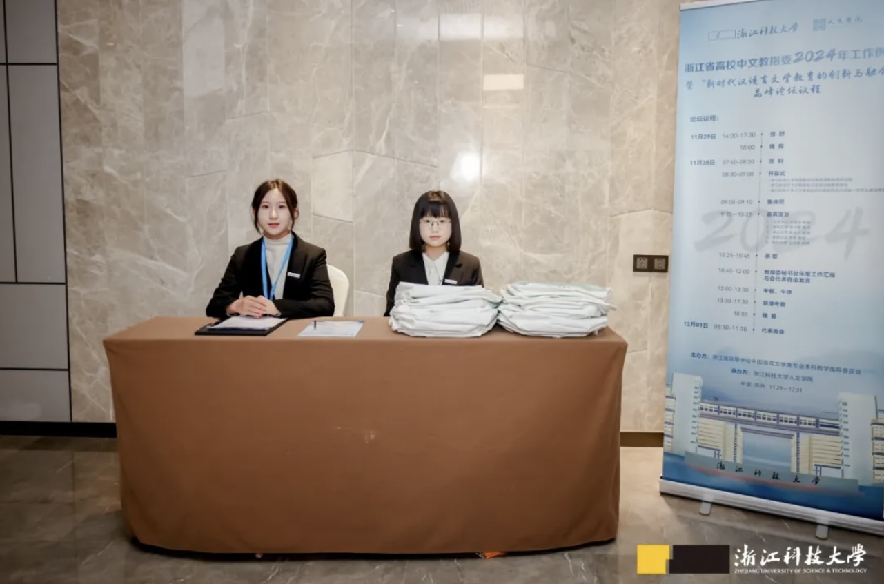 最后特别值得一提的是,作为我院汉语言文学专业教育《秘书理论与实务》课程改革的实践活动,我院23级陈丹妮、朱鸿乐、顾盈丽、凡亚婷和陈意芳五位同学,不仅全程参与了会议接待和服务工作,还参与了会议领导致辞稿和新闻稿的写作,专业且出色的完成了会议相关任务,表现了我院中文系学生的专业风采。