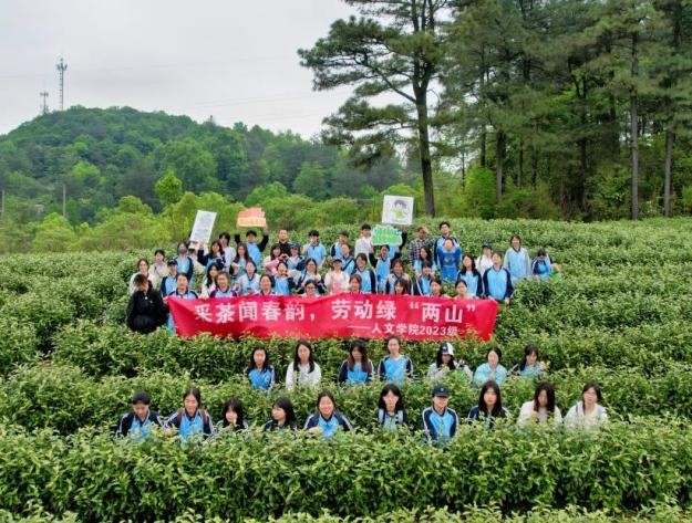 “入淮清洛渐漫漫。雪沫乳花浮午盏,蓼茸蒿笋试春盘。人间有味是清欢。”江南四月,淡云微风,茶香四溢,而在122cc太阳成集团的校园内亦是弥漫着一股清新而浓郁的茶香,不如就此携手上春山,采春茶,摘一片青绿,尝一口春意。因此,小和山校区与安吉校区携手开展了一场别开生面的采茶劳动教育实践课堂,将“第二课堂”开设至安吉县孝丰镇老石坎村的茶山上,将劳动教育理念渗透到课程与实践中,青年学子们在亲身体验中感受到了传统文化的独特魅力,用汗水和智慧谱写了劳动与文化的交响乐。