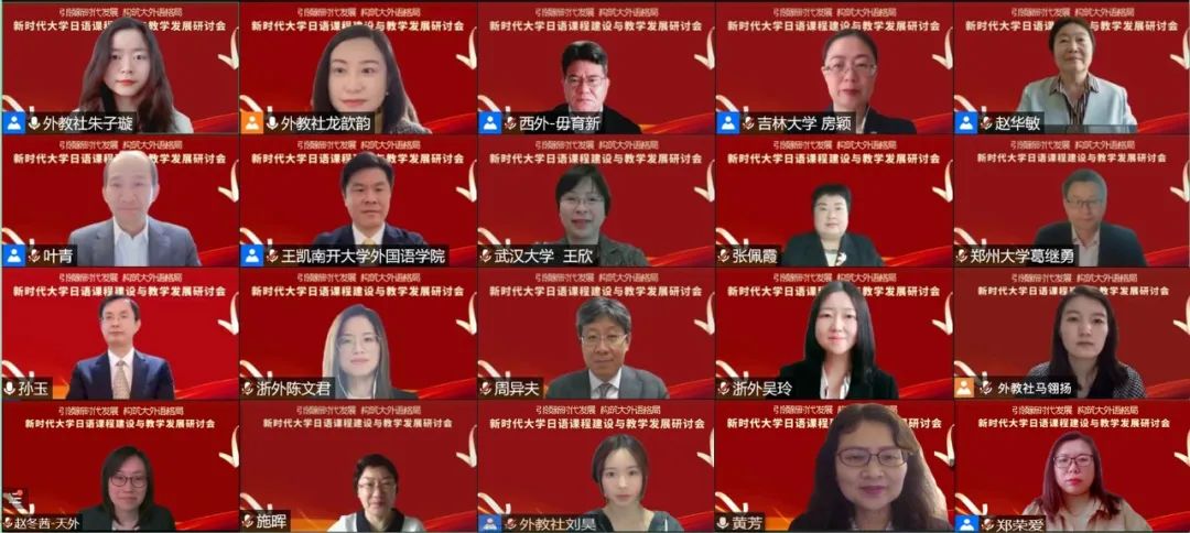 在研讨会主旨报告环节中,教育部高等学校大学外语教学指导委员会副主任委员、北京大学赵华敏教授首先对《大学日语教学指南(2021版)》进行要点解读,列举新《指南》的六大特点并作详细分析。北京外国语大学日语学院院长周异夫教授接着作了题为“素质·知识·能力——新时代日语人才培养与教学改革”的报告,系统介绍了国内日语教育存在的长期性问题和目前面临的新挑战,强调高校应以教师、课堂、教材为主要抓手,推进教学改革深入发展,建设丰富教学资源,提高人才培养质量;在专题报告环节中,西安外国语大学毋育新教授以“新高考背景下大学日语课程建设探索”为题,分享了西安外国语大学的大学日语教学情况;浙江外国语学院吴玲教授报告题为“大学日语智慧教学的探索与实践”,指出随着互联网兴起,智慧教学论文数量突然快速增长,并分享了智慧教学的具体实践。吉林大学房颖副教授报告题目为“新时代背景下大学日语教材的编写原则、理念与创新”,从课程设置、学生结构、对老师的新要求三方面分析了大学日语教育面临的新挑战;在教学分享环节中,两位一线教师——武汉大学日文系王欣和浙江外国语学院陈文君分别聚焦课程思政和智慧教学,以《新时代大学日语》中的课文为例,带来了各具特色的教学设计展示;大会特设15个分会场分组研讨,广大教师踊跃发言,共同探讨大学日语的教学改革、课时安排、课程教学资源建设、课程考核要求等一系列重要议题,并提出高考选考日语的考生入学后水平参差不齐,各高校只能以零基础日语教学为起点等现实,寻求破解之道。