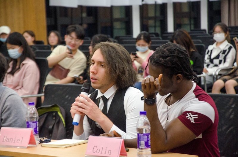 在世界面临百年未有之大变局的历史时刻,人们再次追问“人类向何处去”的历史命题。在这关键时刻,中国给出了“构建人类命运共同体”的伟大倡议。构建人类命运共同体是人类共同的责任,是中华民族的责任,也是我们当代中国大学生的责任。为此,外国语学院和安吉校区外语协会联合举办主题为China's Wisdom for the World(中国向世界贡献的智慧)2022年浙江科技学院大学生英语演讲竞赛暨第十七届浙江省大学生英语演讲竞赛(A类)校内选拔赛。决赛于5月16日晚在安吉校区举行,特邀留学生Colin与Daniel担任提问官。