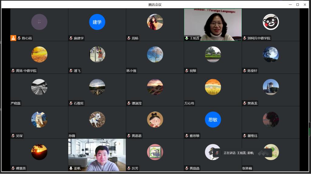 本期教学工作坊聚焦外语教学创新与实践,特邀宁波工程学院外国语学院姜帆博士担任主讲嘉宾,吸引了外国语学院全体外语教师和中德学院部分教师共计66人在线参加。工作坊由副院长王旭莲主持。