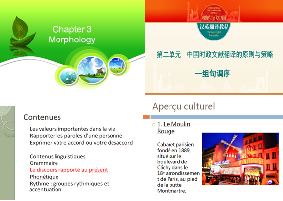 周杨老师团队展示的《法语4》则将课程思政融入学生的语言表达训练,在潜移默化中向学生传达符合新时代中国特色社会主义核心价值观。以《你好!法语2》第33课“什么是幸福?”主体为例切入,启发学生对价值观问题展开思考和讨论,了解习近平新时代中国特色社会主义思想的价值取向,树立正确的价值观和金钱观,在教书的同时也将育人落到实处。