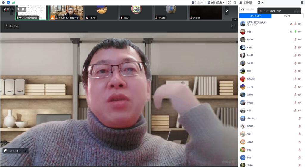 1月12日,广东外语外贸大学孙毅教授应邀为我院教师在线上做了题为“新形势要求下高水平项目撰写路径与申报策略”学术讲座,讲座由樊燕龙院长主持,学院骨干教师聆听了此次讲座。
