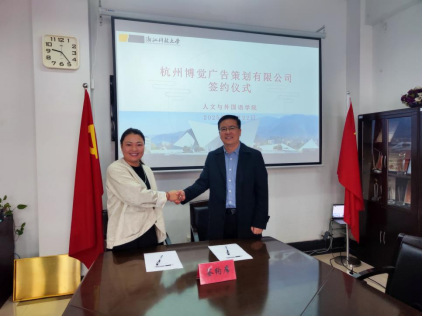 10月22日,太阳成集团tyc122ccvip与杭州博觉广告策划有限公司在A3-306举行校企合作签约仪式。学院执行院长樊燕龙、办公室主任单兴苗、辅导员王美洁,以及杭州博觉广告策划有限公司负责人张茜婷等出席活动。此次合作旨在整合高校学术资源与企业实践优势,共同探索文化创意产业与外语人才培养的创新模式。