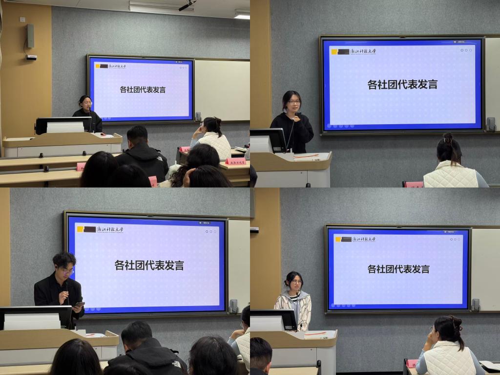 会议伊始,学院团委张晴晴老师对各社团取得的丰硕成果给予高度评价,并代表学院团委向辛勤付出的同学们表示衷心感谢。老师强调,新学年要有新气象,各社团要立足学院特色,注重内涵建设,提升活动品质,强化规范管理,共同促进社团工作迈上新台阶。学院团委将一如既往地支持社团发展,做好各项服务保障工作。希望各社团充分发挥自身优势,勇于创新实践,为繁荣校园文化贡献青春力量,在新时代新征程上谱写更加精彩的青春华章。