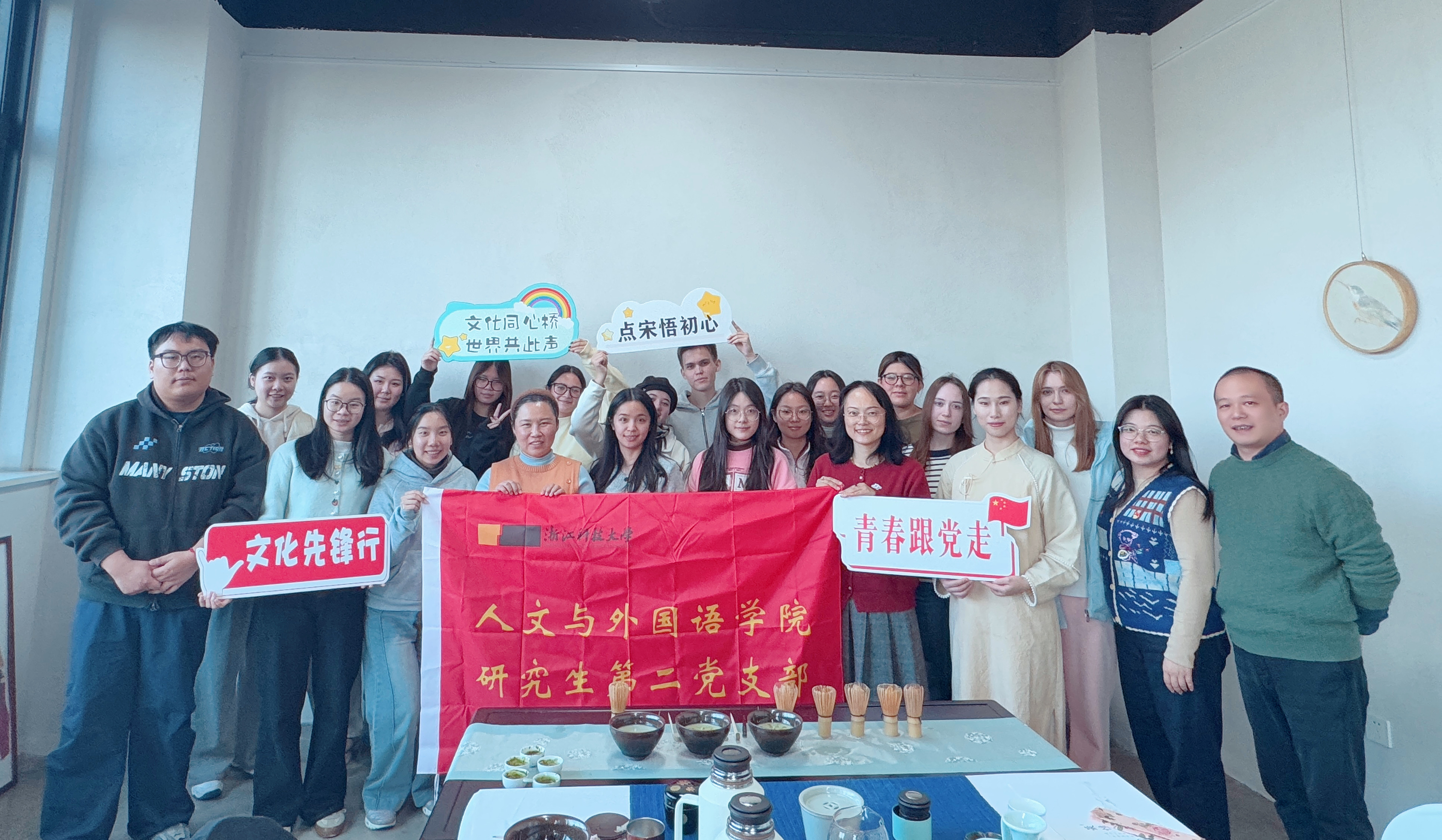 近日,太阳成集团tyc122ccvip研究生第二党支部组织党员、入党积极分子、留学生共21人,成功举办“一盏浮云,一期一会”宋代点茶文化体验主题党日活动。