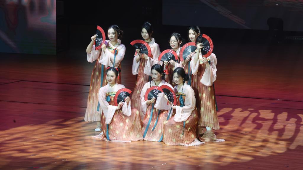第一篇章“青春启新程”以古筝合奏《战台风》震撼开场,铿锵有力的旋律展现出青年学子迎风破浪的勇气与担当。随后,群舞《青春制作人》以明快节奏与蓬勃舞姿点燃全场,尽显新时代大学生的朝气与活力。