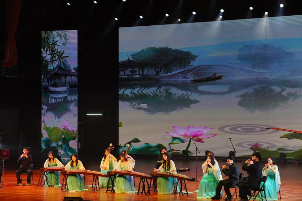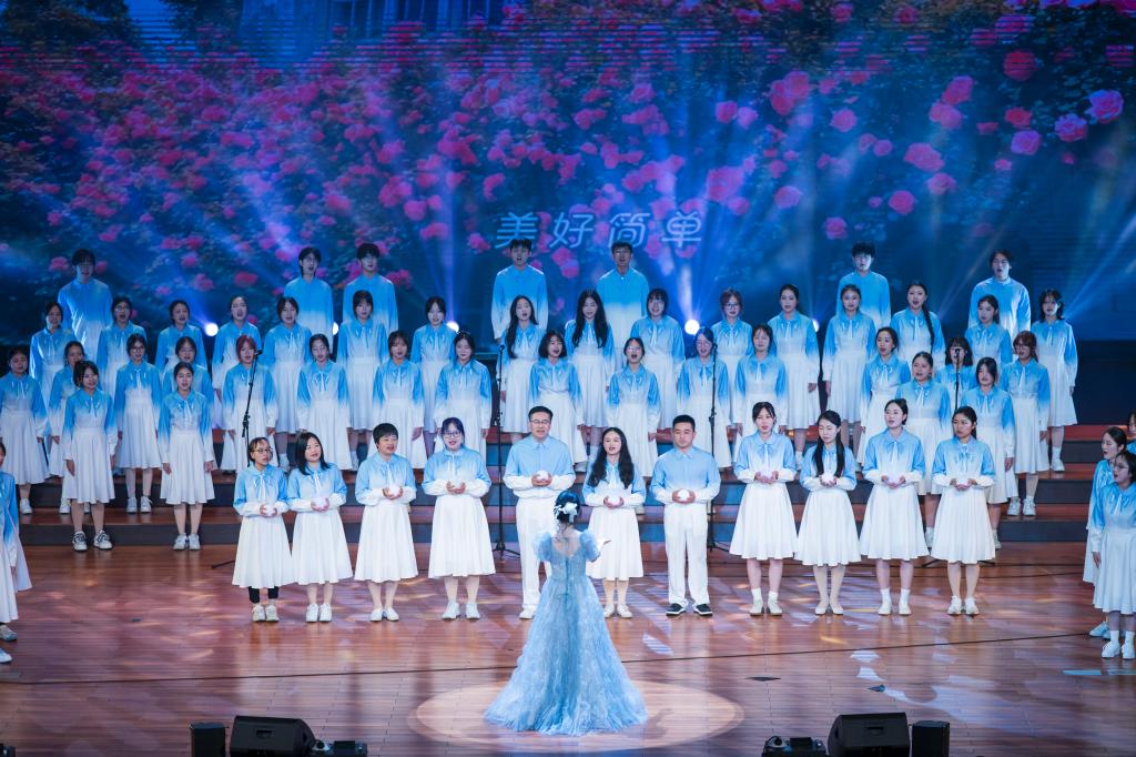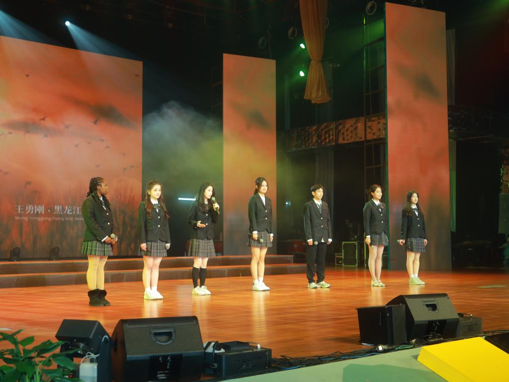 第二篇章“华韵四海风”以多元艺术形式呈现文化的交融与回响。女声小组唱《世界赠予我的》温柔而真挚,歌声在舞台上缓缓流淌;埙乐合奏《钱塘春想》古韵悠长,将观众带入富有诗意的江南意境。在优秀班主任颁奖环节中,张琴老师、徐梁峰老师获此荣誉。两位老师长期深耕班级管理与学生指导,在日常点滴中陪伴学生成长,用耐心与责任诠释育人初心。男声小组唱《故乡的云》唱响游子的深情与眷恋;群舞《我,漫步在时间的细沙之上》以舒展的肢体语言,与时间和记忆展开对话。二等奖幸运抽奖的揭晓,再次点燃现场气氛。